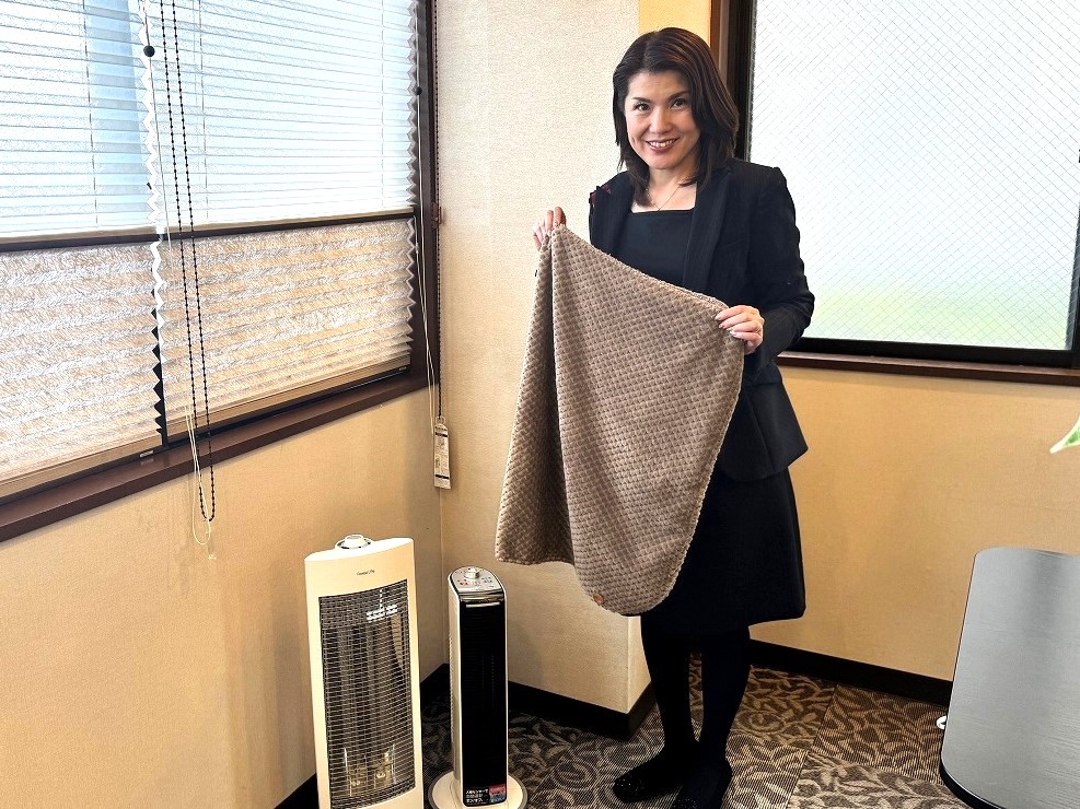 貸し出し用のヒーターや、さっと使えるブランケットがあり、