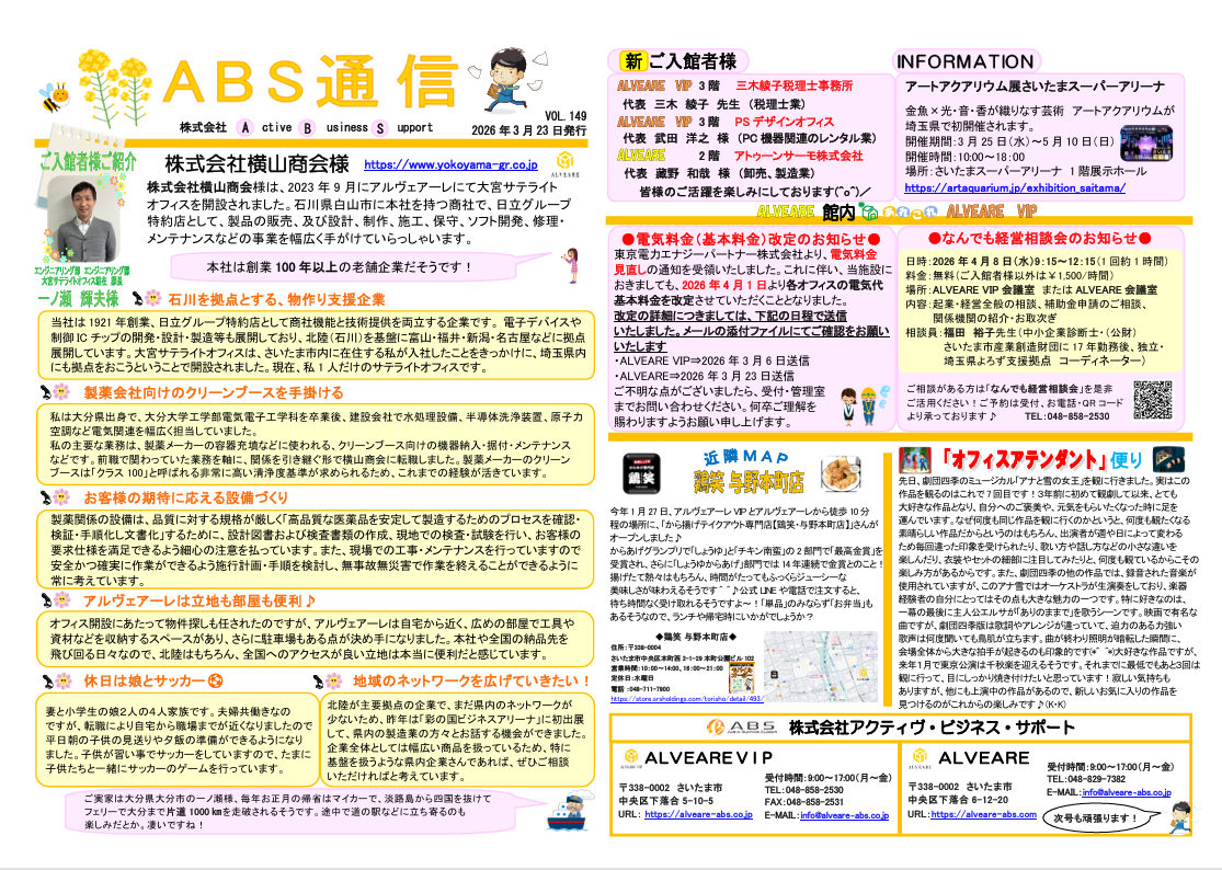 ABS通信vol.149(4月号)を発行いたしました♪